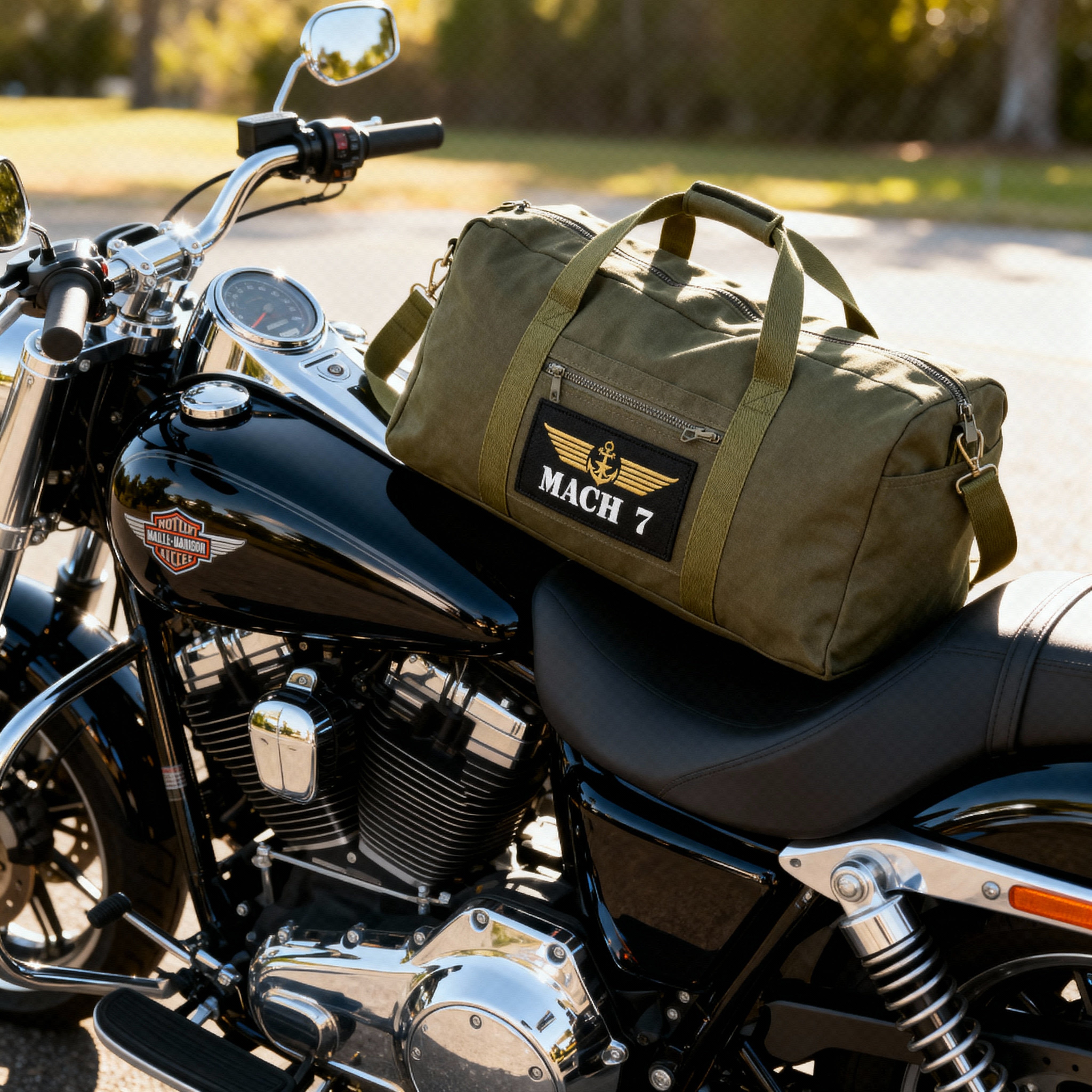 Pratique avec sa bandoulière, ses poches et sa sangle de fixation pour les valises, spacieux, de très belle qualité (tissu 100% coton imperméable, anti-UV, imputrescible, fabriqué en France), élégant avec sa sobriété et son bel écusson brodé Mach 7, personnalisable avec son écusson détachable sur velcro et brodé au nom de votre choix, idéal pour des cadeaux personnalisés.