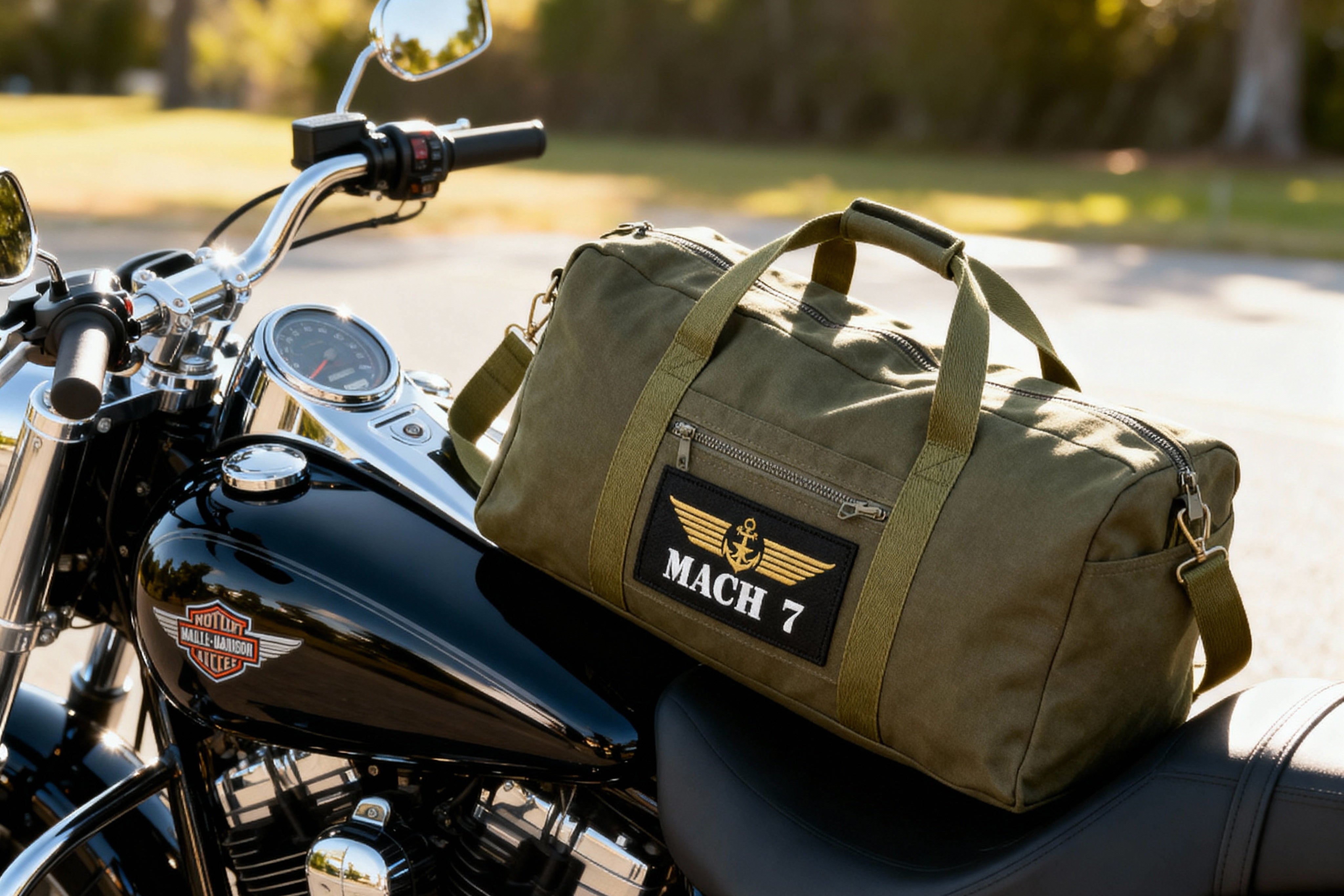 Pratique avec sa bandoulière, ses poches et sa sangle de fixation pour les valises, spacieux, de très belle qualité (tissu 100% coton imperméable, anti-UV, imputrescible, fabriqué en France), élégant avec sa sobriété et son bel écusson brodé Mach 7, personnalisable avec son écusson détachable sur velcro et brodé au nom de votre choix, idéal pour des cadeaux personnalisés.
